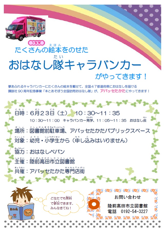 たくさんの絵本をのせたおはなし隊キャラバンカーがやってきます!
