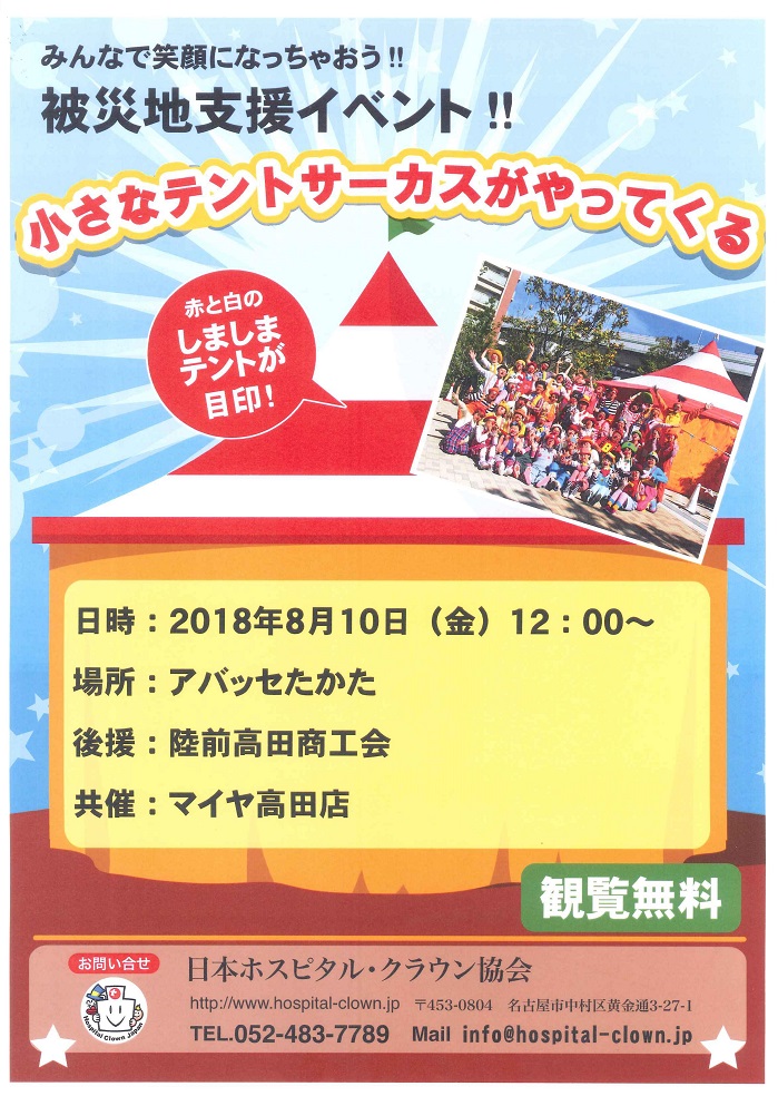 NPO法人日本ホスピタル・クラウン協会/後援 陸前高田商工会/共催 マイヤ高田店
