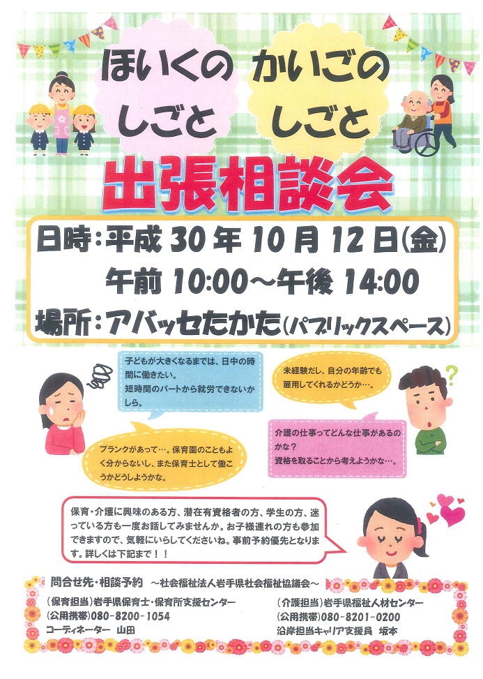 保育・介護の仕事に就労を検討または関心のある方を対象に、資格取得を含めた就職相談会を開催します。