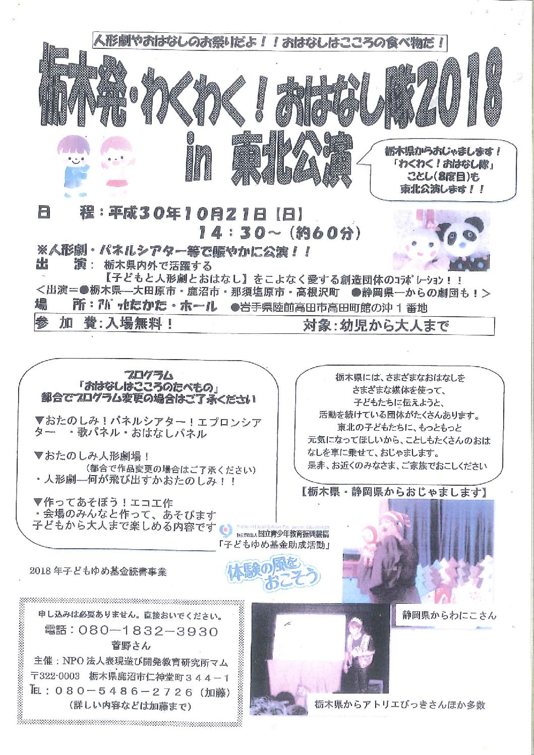 栃木発・わくわく!おはなし隊2018 in 東北公演