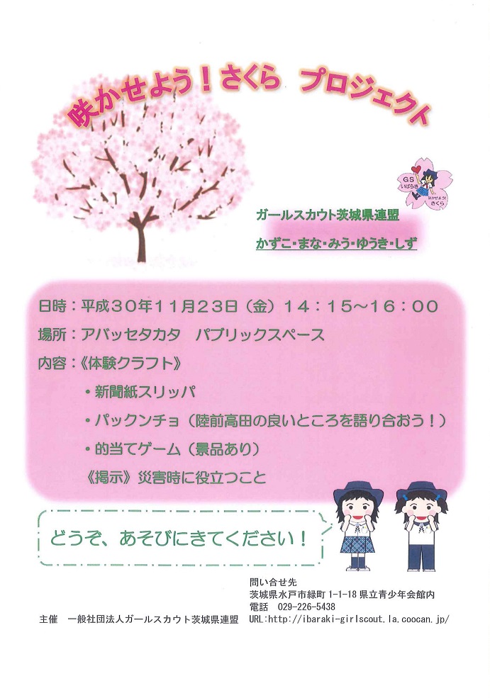 一般社団法人ガールスカウト茨城県連盟 電話番号:029-226-5438