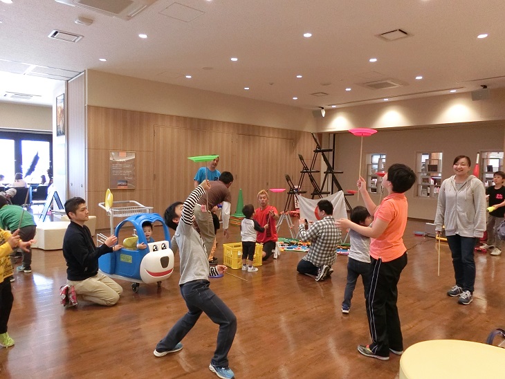 パフォーマンスショーの他、皿まわしなどの体験あそびができます。