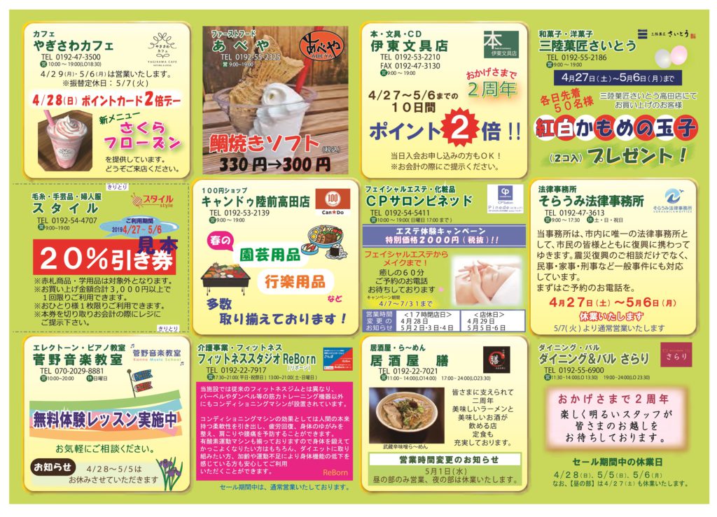 なお、アバッセたかた内店頭にてチラシを配布いたしております。あわせてご覧ください。