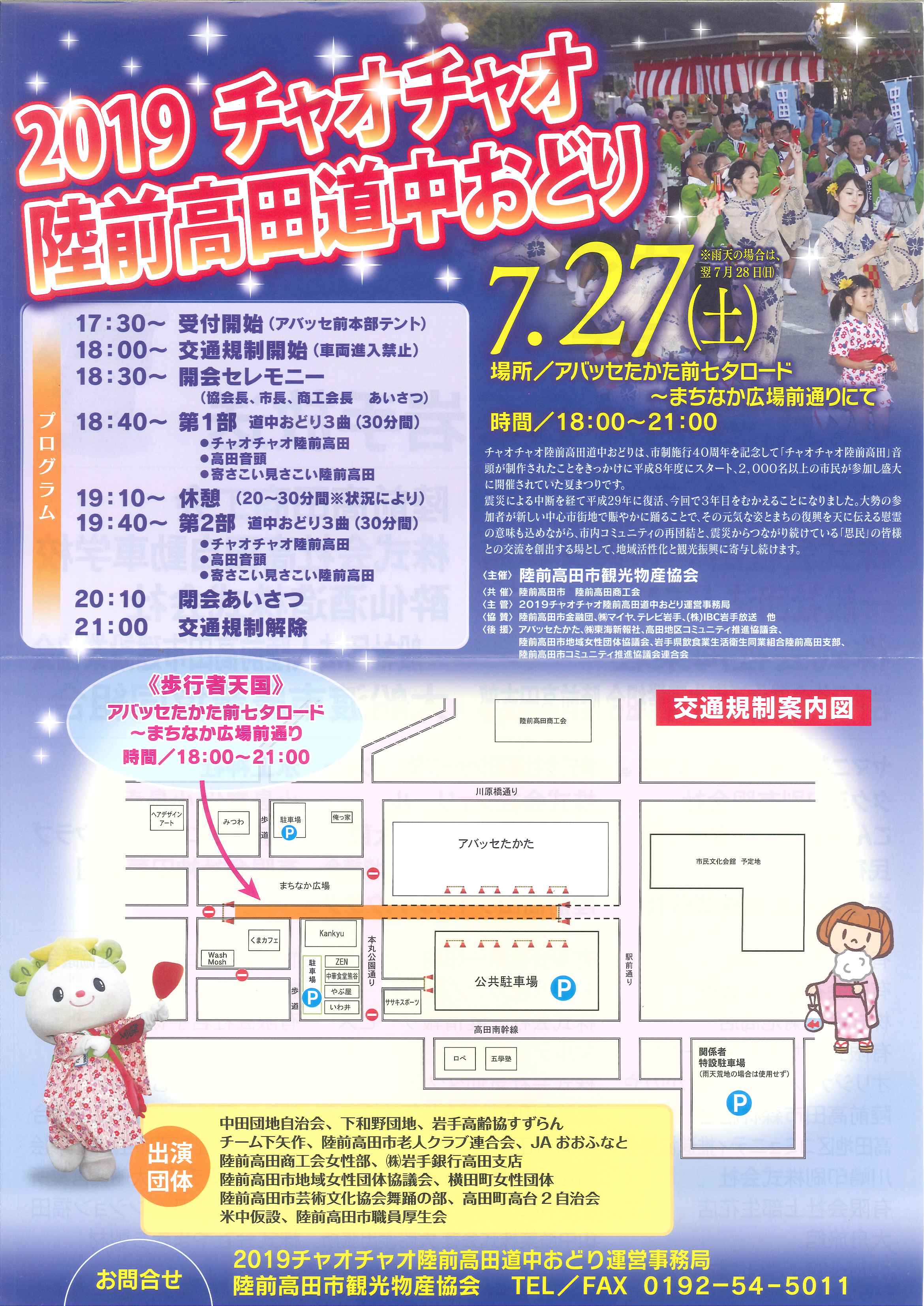 2019チャオチャオ陸前高田道中踊り運営事務局 陸前高田市観光物産協会 電話番号:0192-54-5011