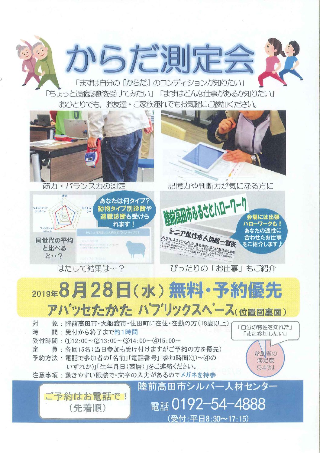 潜在労働力の掘りおこしを目的とした体力等の測定を行います。