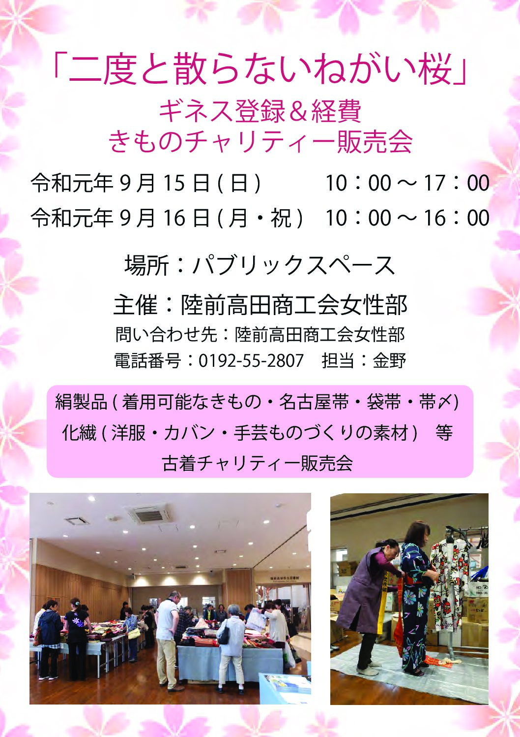 「二度と散らないねがい桜」ギネス登録&経費 きものチャリティー販売会