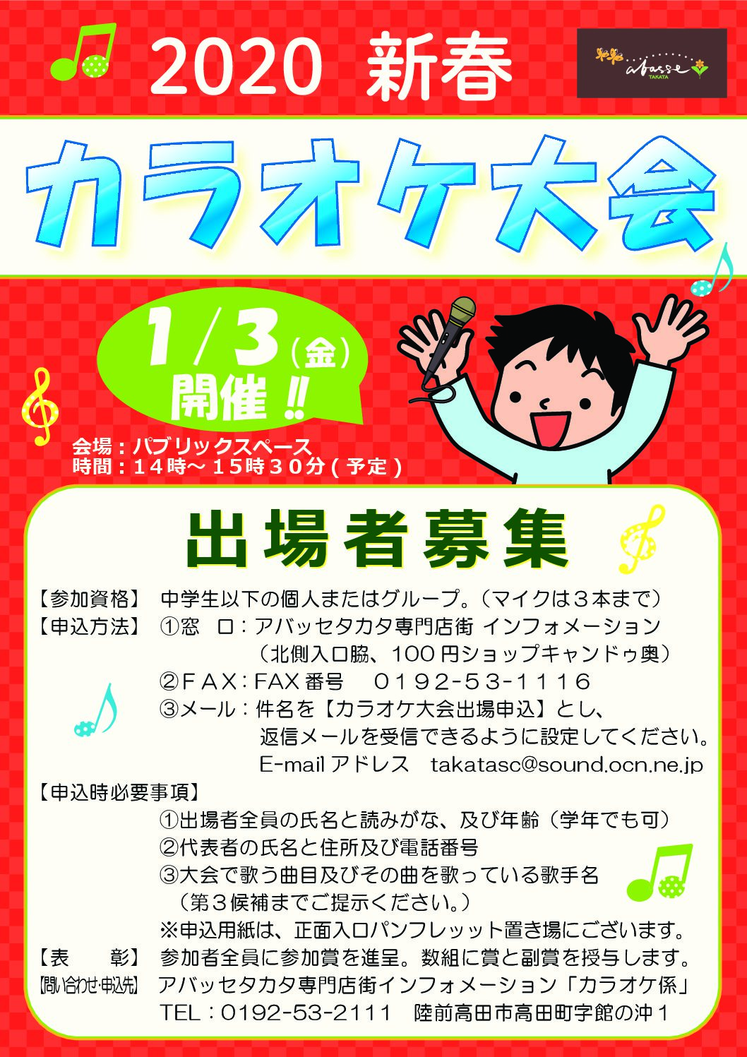 令和2年1月3日開催【2020新春カラオケ大会】出場者募集!