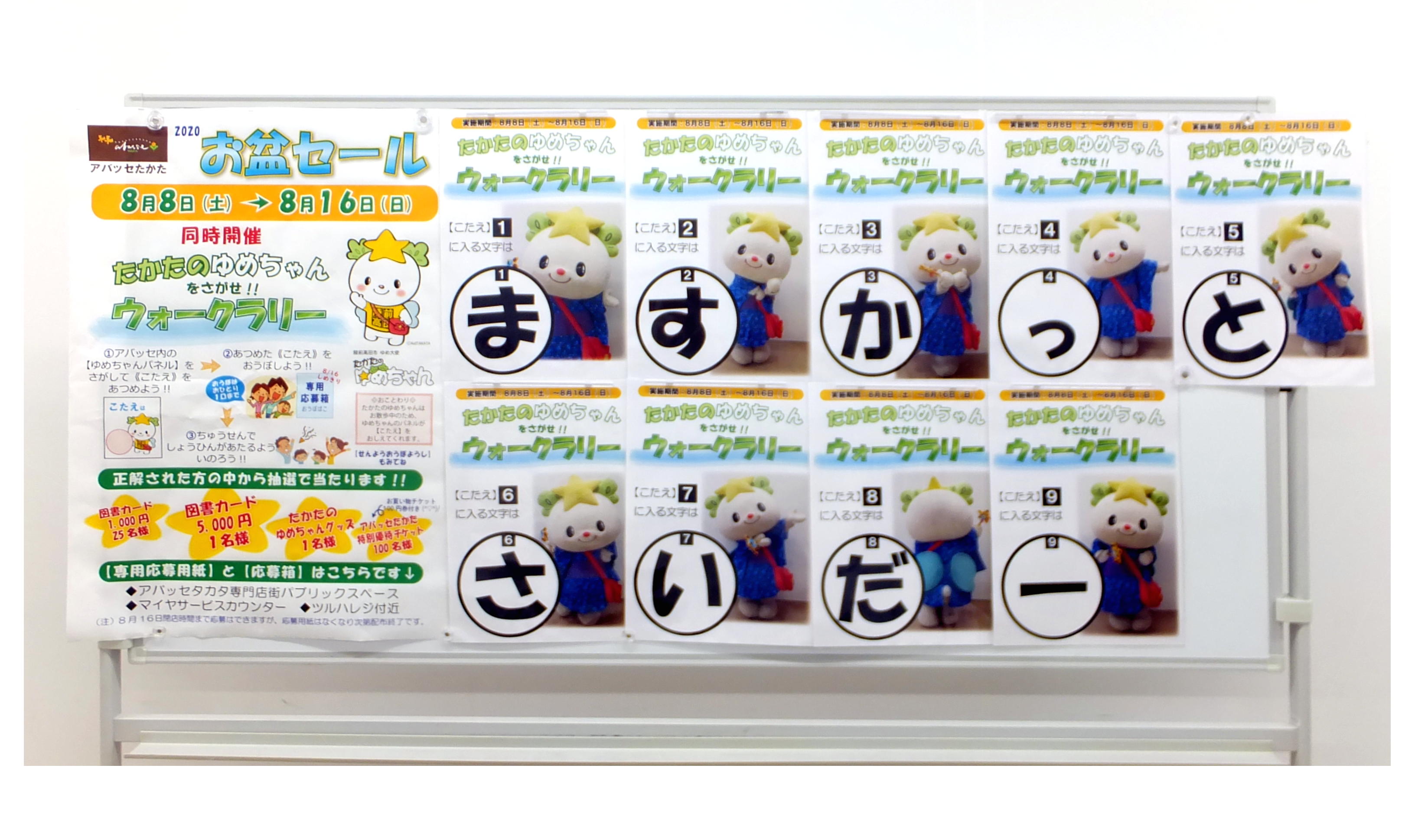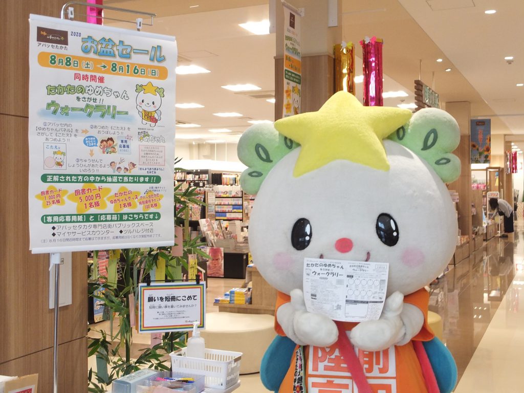 お盆セール同時開催の「たかたのゆめちゃんをさがせ!!ウォークラリー」には、