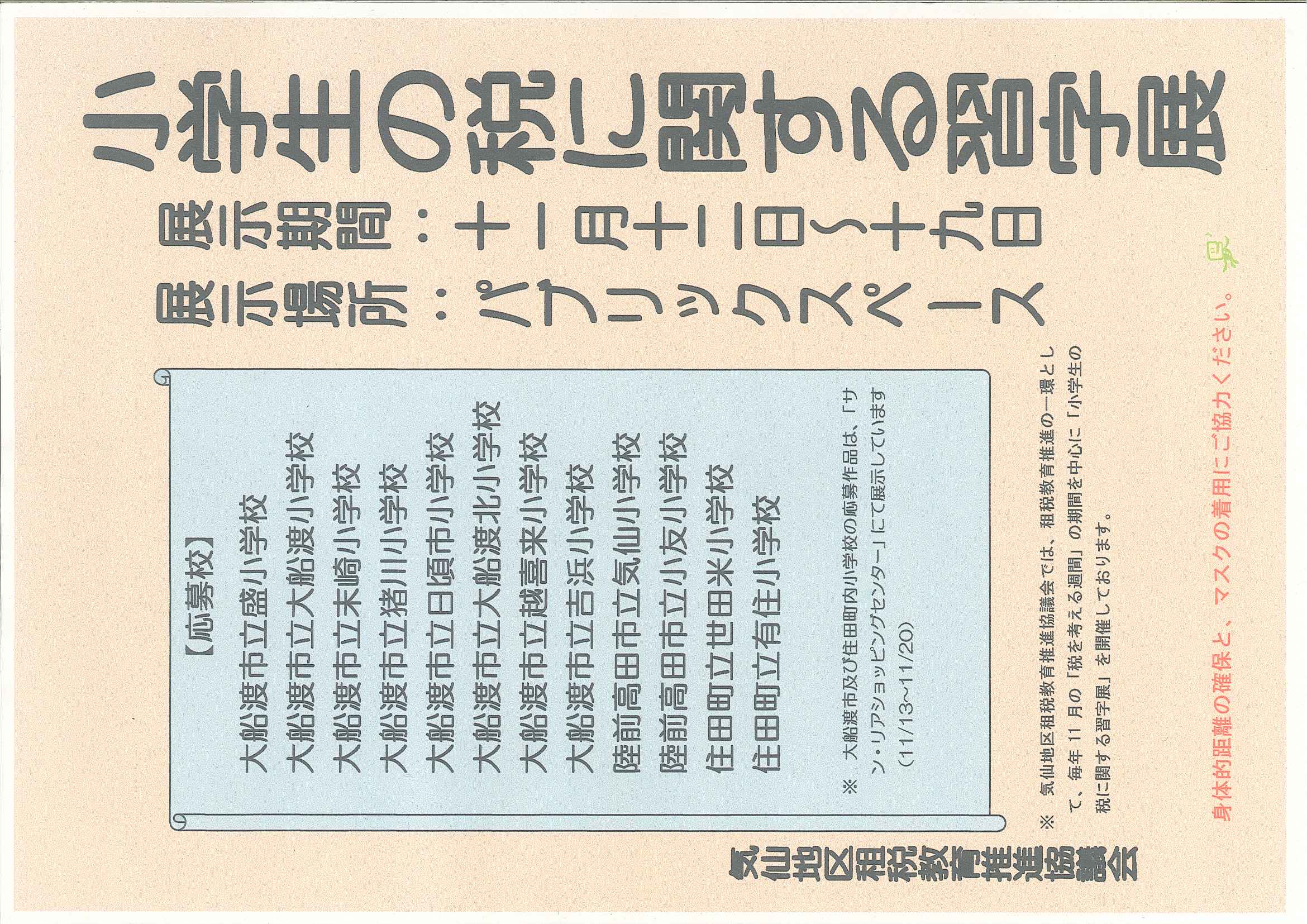 小学生の税に関する習字展