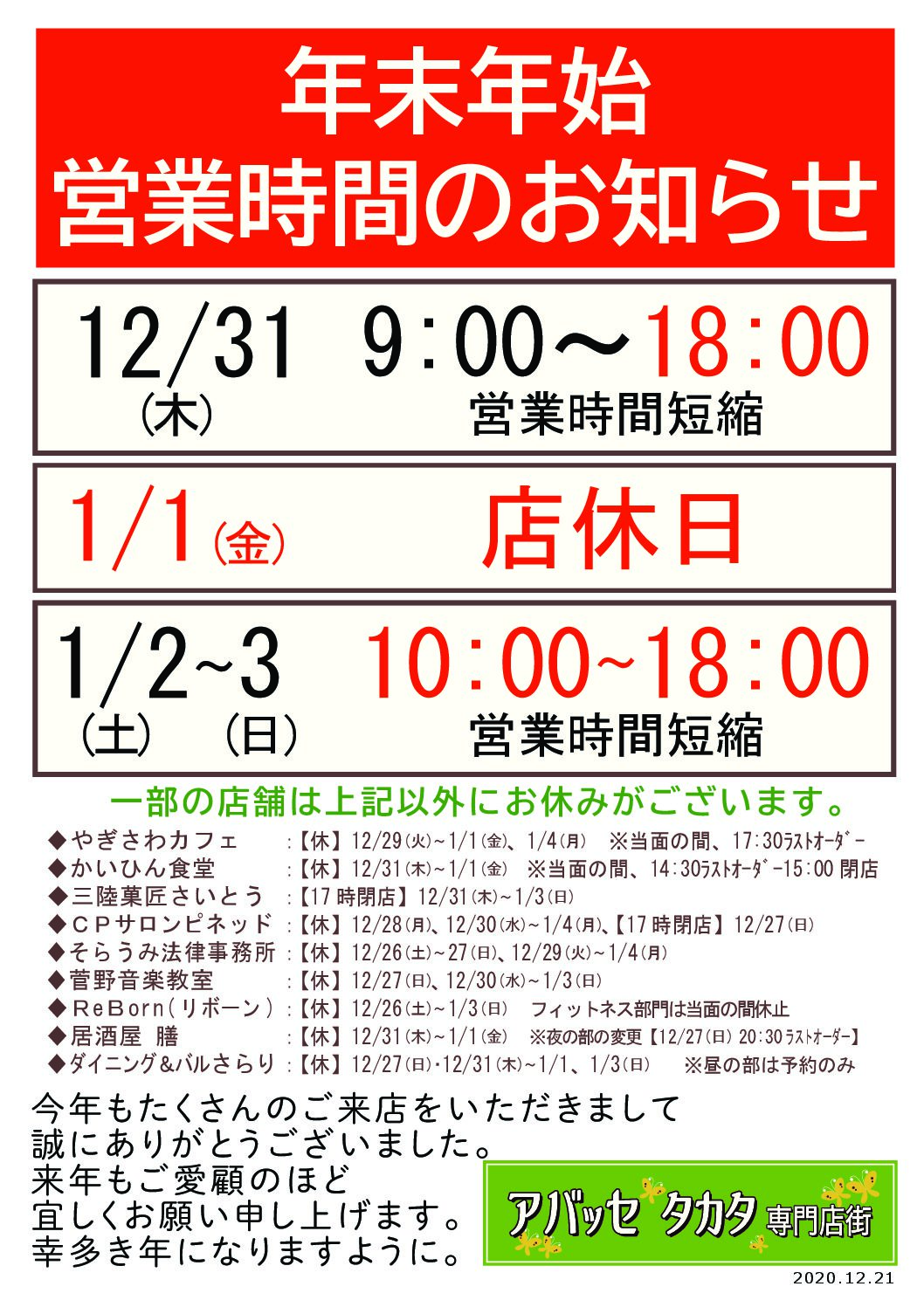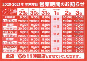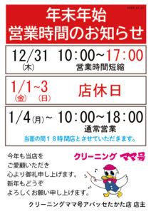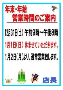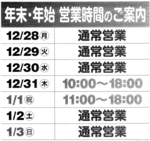 【年末年始の営業時間変更のお知らせ】