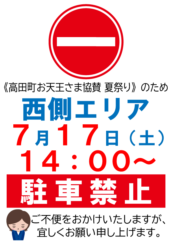 【7/17 駐車規制のお知らせ】公共駐車場西側エリア(図書館・専門店街前エリア)