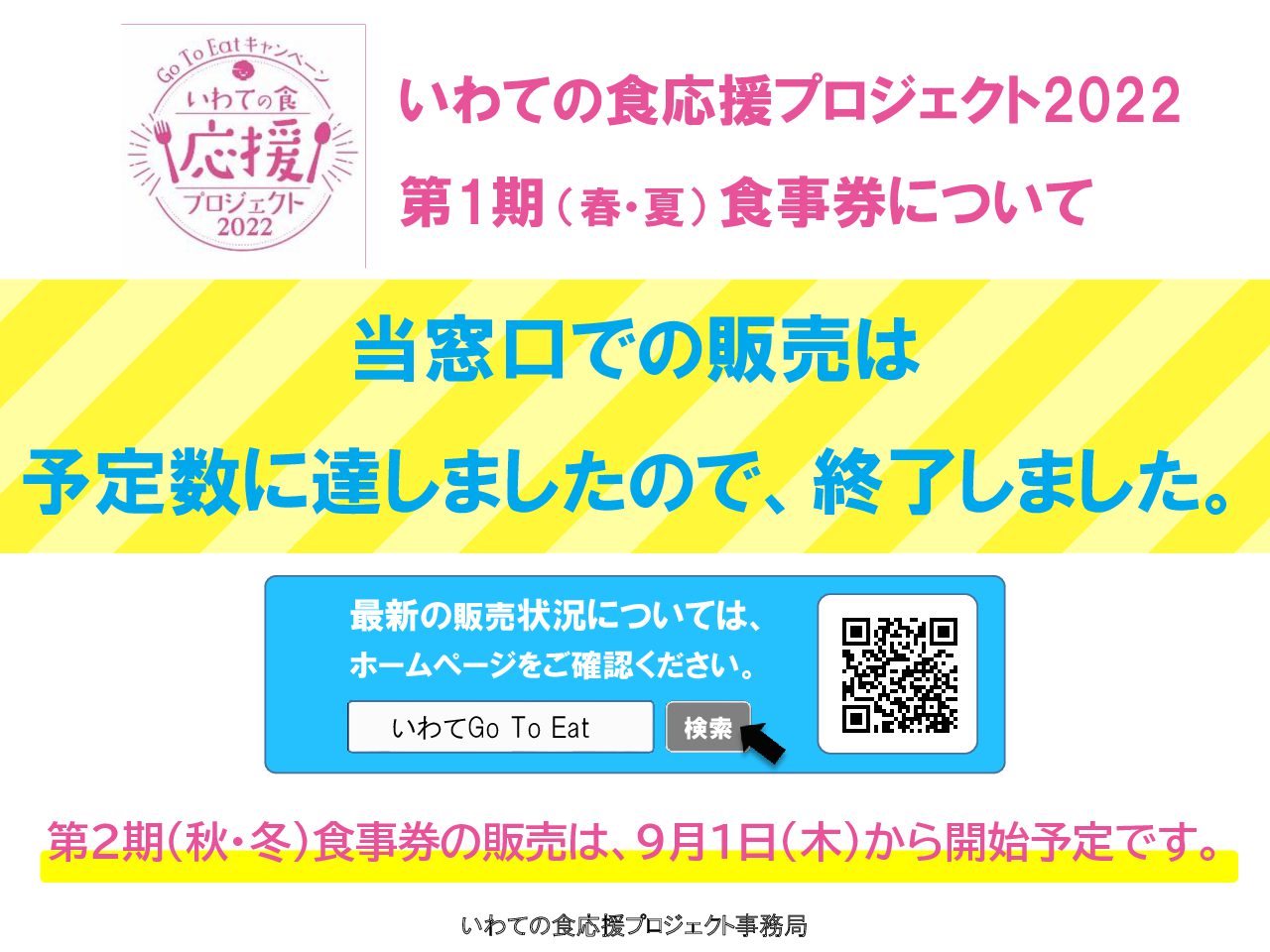 【完売いたしました】いわての食応援プロジェクト2022第1弾(春・夏)食事券