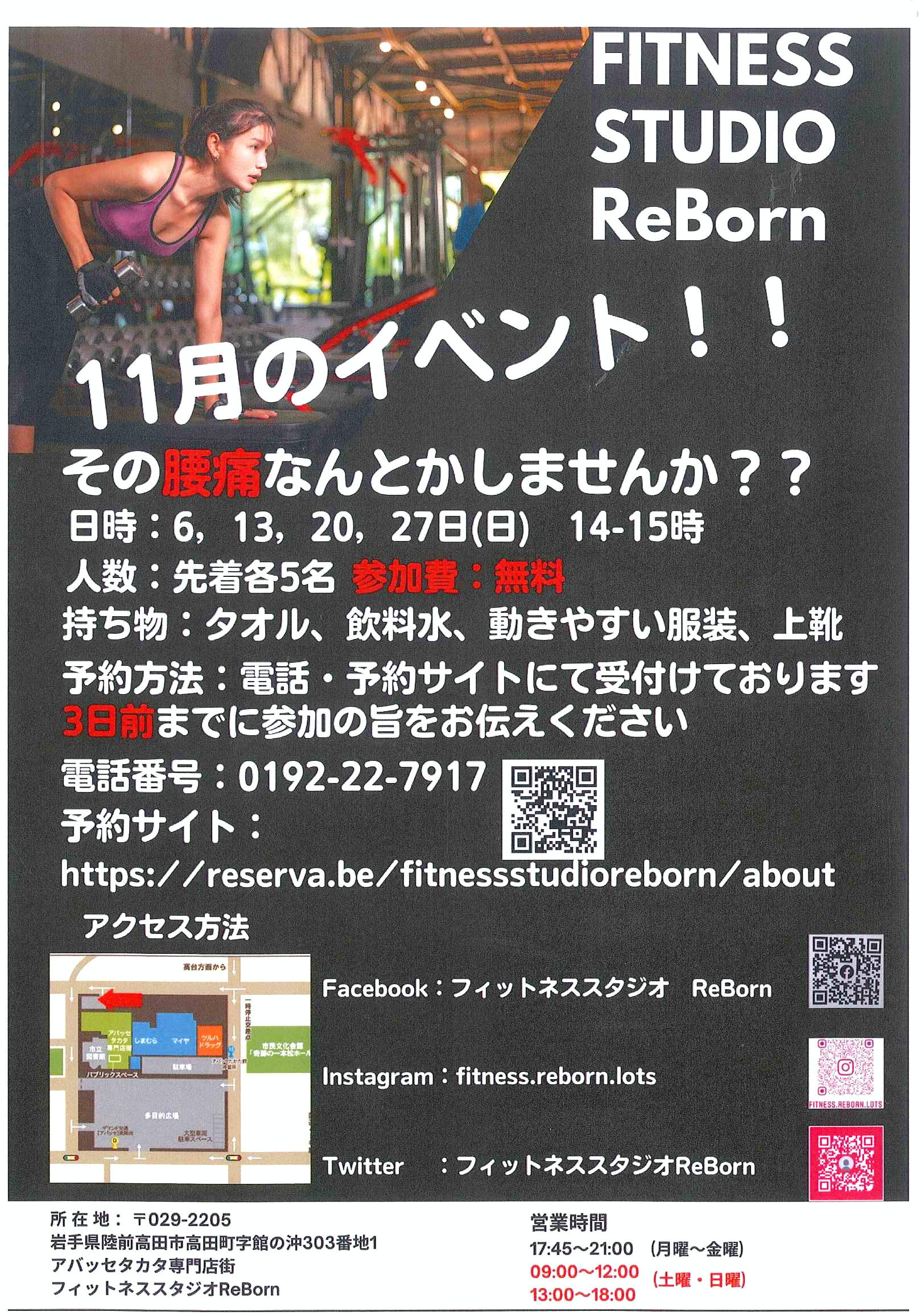 フィットネススタジオ ReBorn(リボーン) 電話番号:0192-22-7917