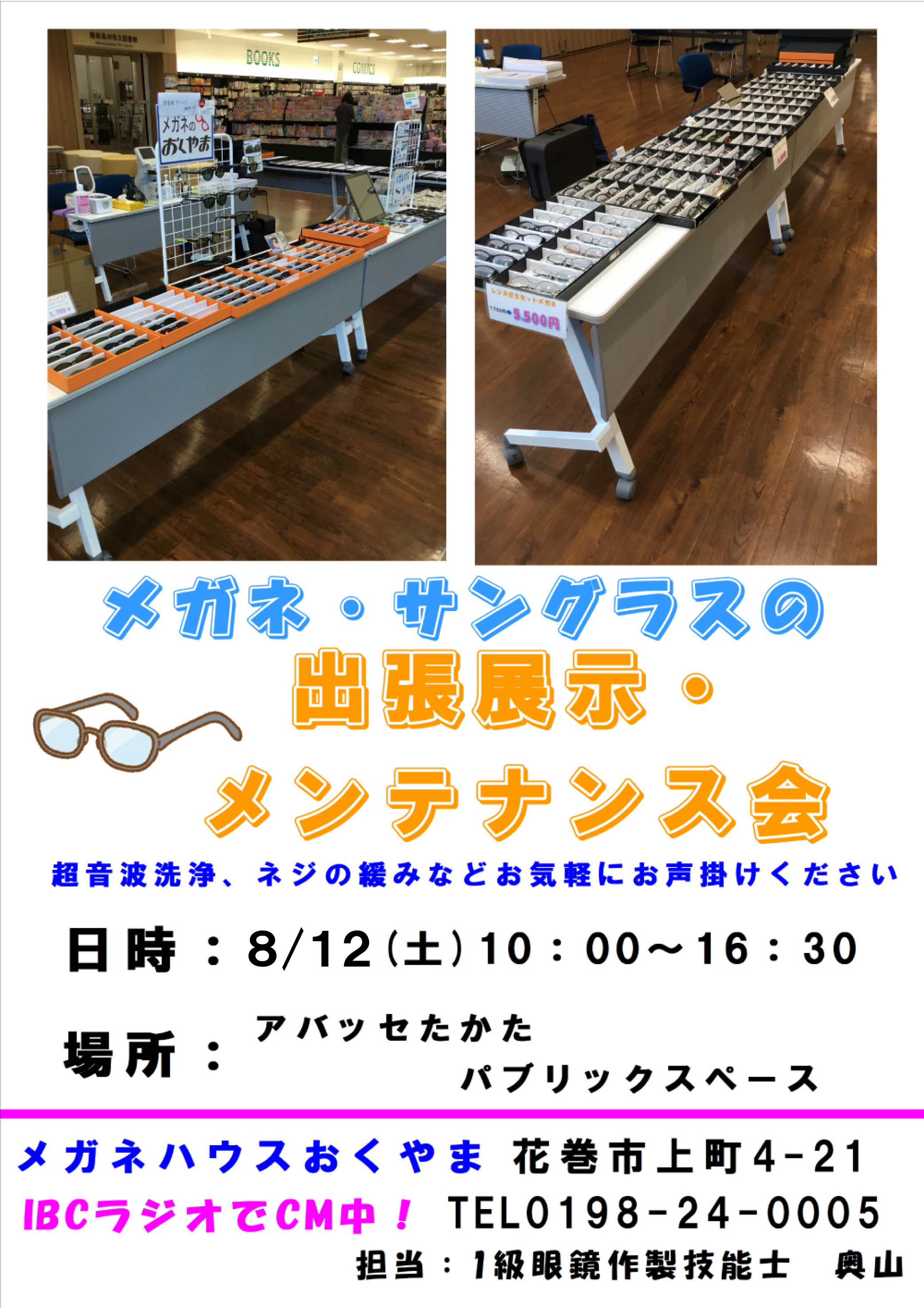 メガネハウスおくやま 電話番号:0198-24-0005(1級眼鏡作製技能 奥山 剛)