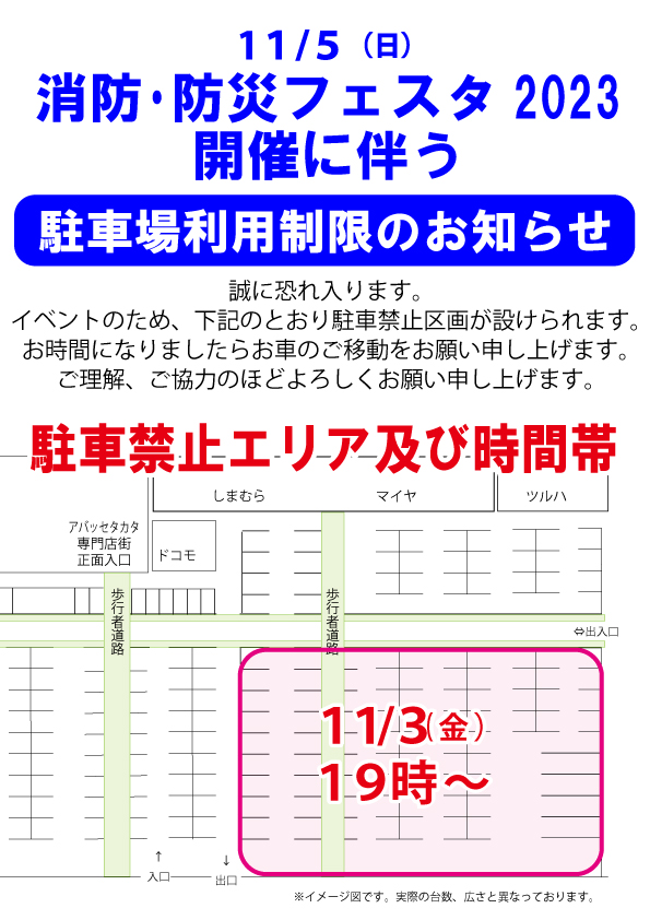《駐車場規制》11月3日(金)19時~一部駐車禁止