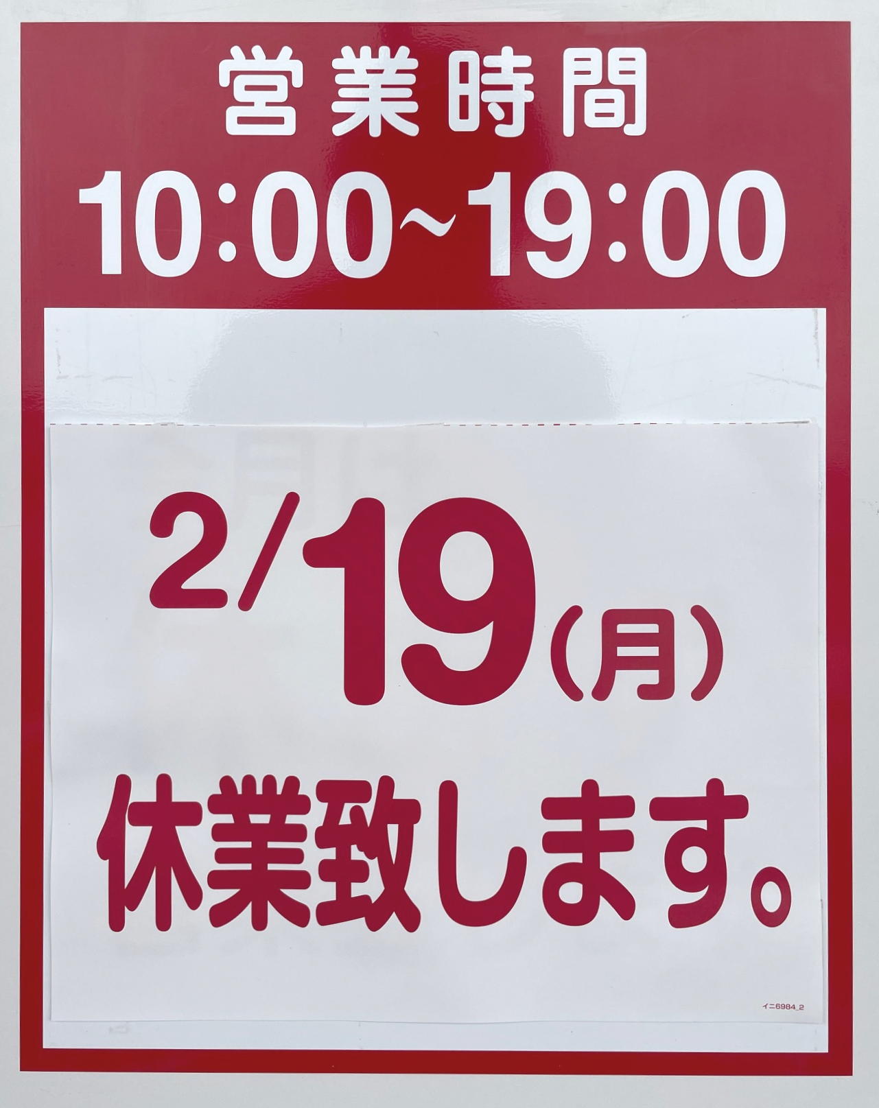 【休業のお知らせ】2月19日(月)ファッションセンターしまむら陸前高田店
