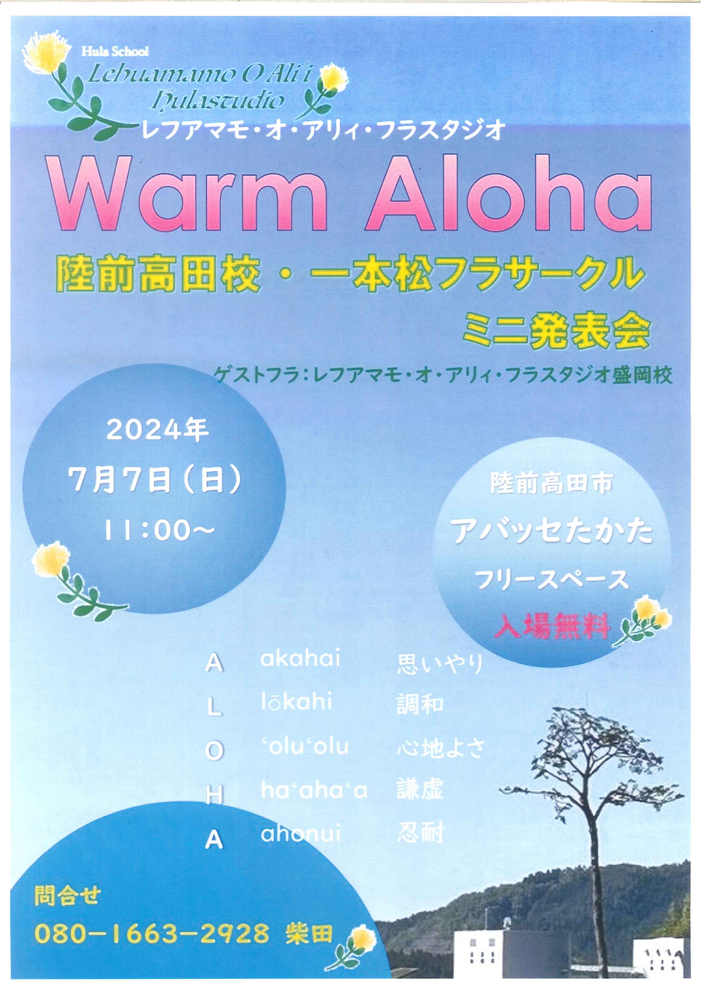 レフアマモ・オ・アリィ・フラスタジオ陸前高田校 電話番号:080-1663-2928(担当:柴田)