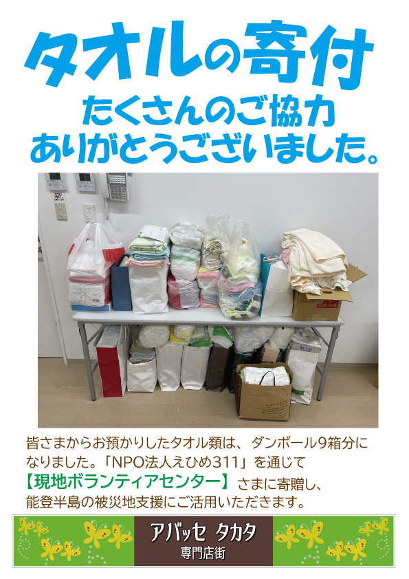 ご報告:【タオル寄付のお願い】能登半島災害支援活動