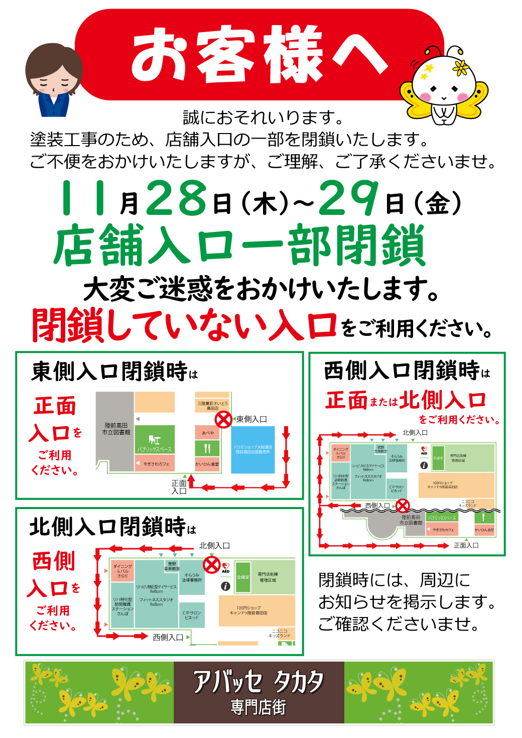 ◎11月29日(金) 朝~閉店 西側入口 閉鎖
