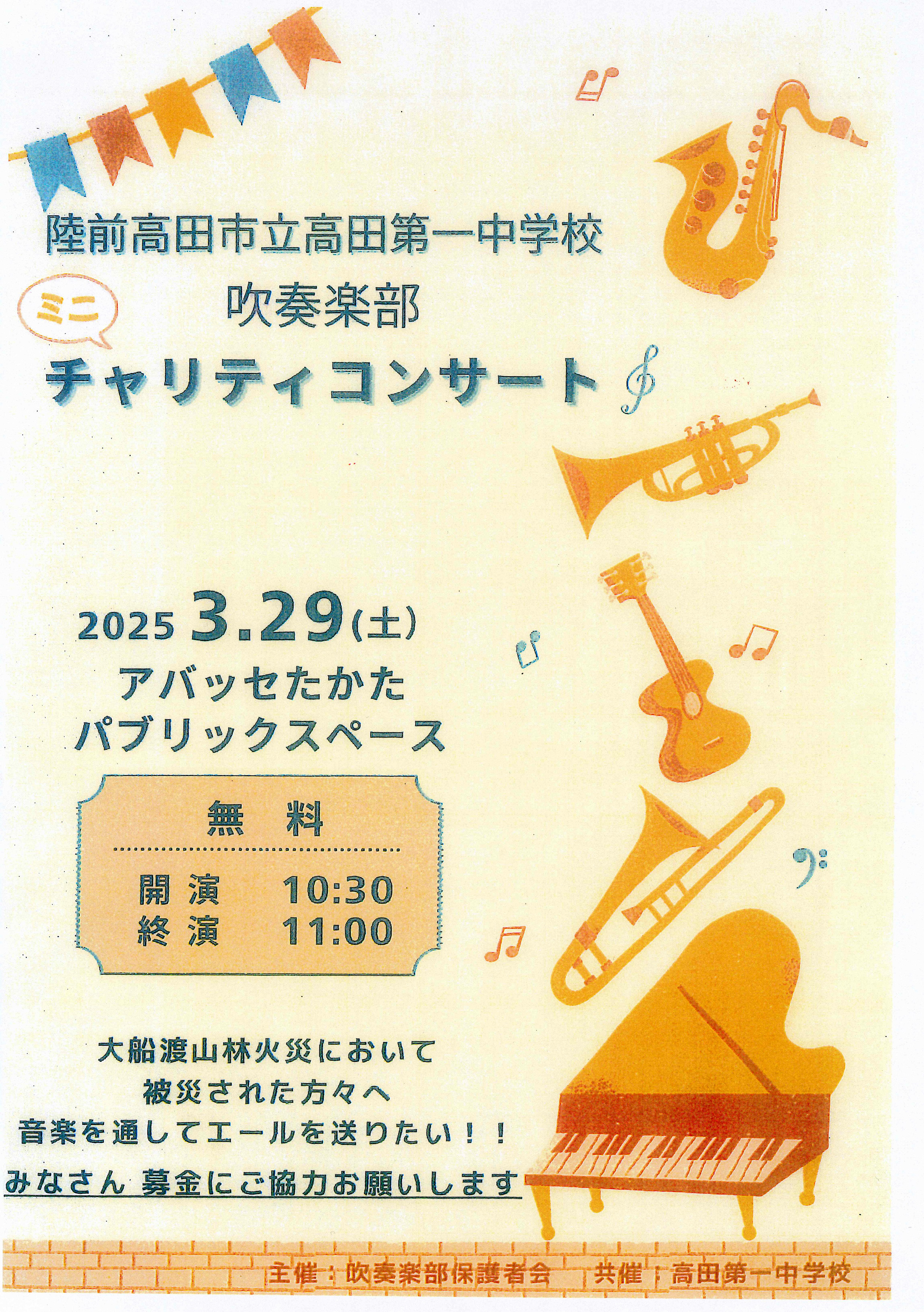 お預かりした募金は、アバッセたかた設置の《大船渡市災害義援金(林野火災)》を通じて、大船渡市にお届けいたしましたことをご報告申し上げます。