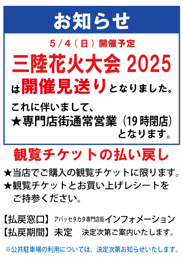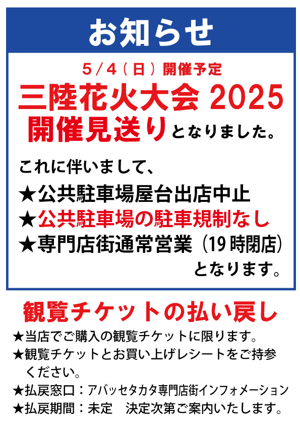 2025.4.23 更新 三陸花火大会2025の開催見送り