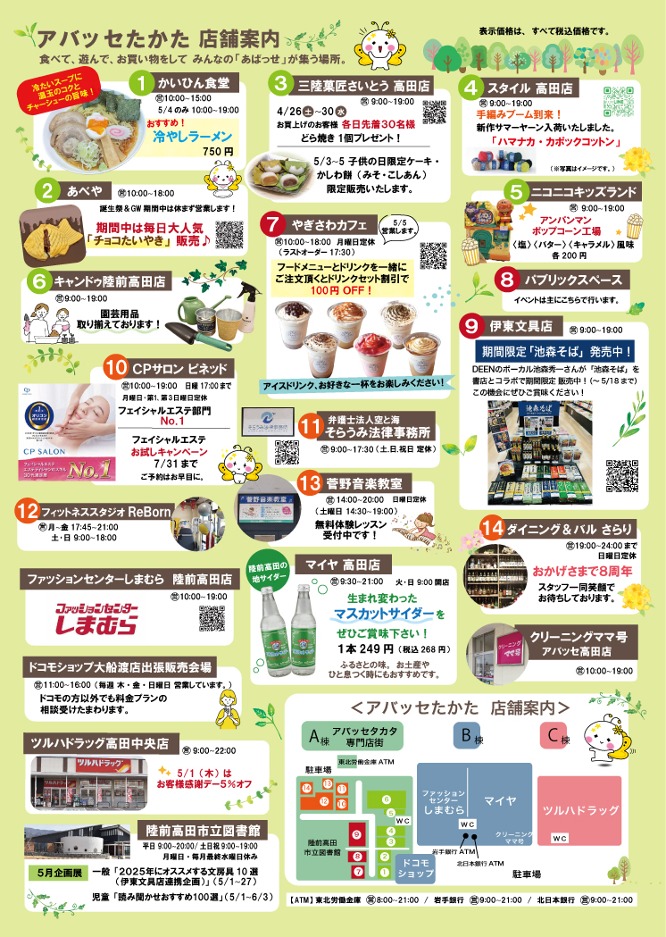 チラシの印刷はこちらから → アバッセたかた2025誕生祭&GWセール チラシ(修正版)