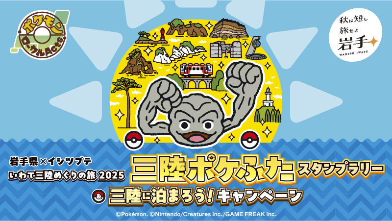 岩手県×イシツブテ いわて三陸めぐりの旅2025 三陸ポケふたスタンプラリー&三陸に泊まろう!キャンペーン