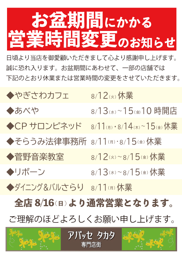 休業日情報に一部誤りがございました。ご迷惑をおかけいたしまして、誠に申し訳ございません。