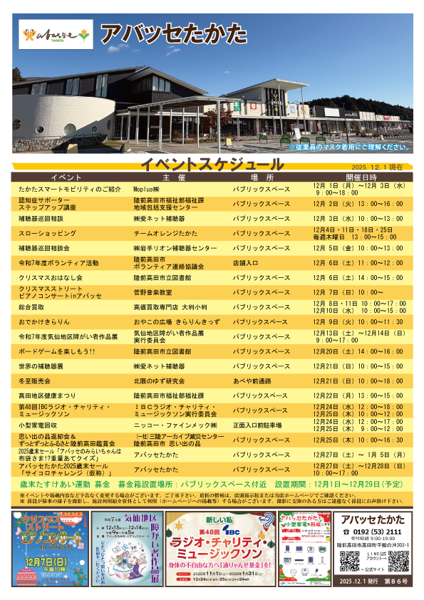 印刷はこちらから ➡ アバッセたかた【今月のイベント】2025年12月