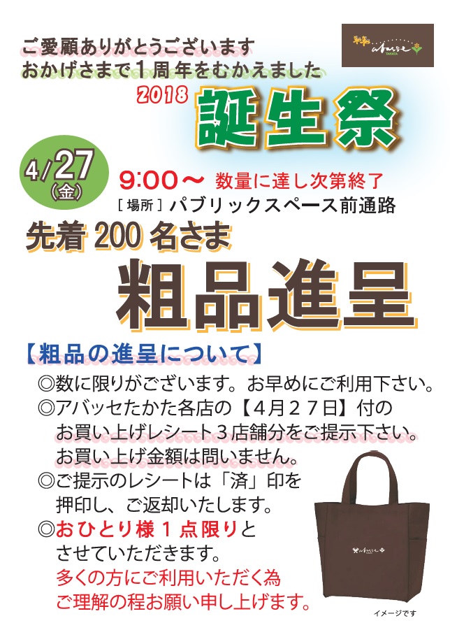 2018誕生祭「先着粗品進呈」
